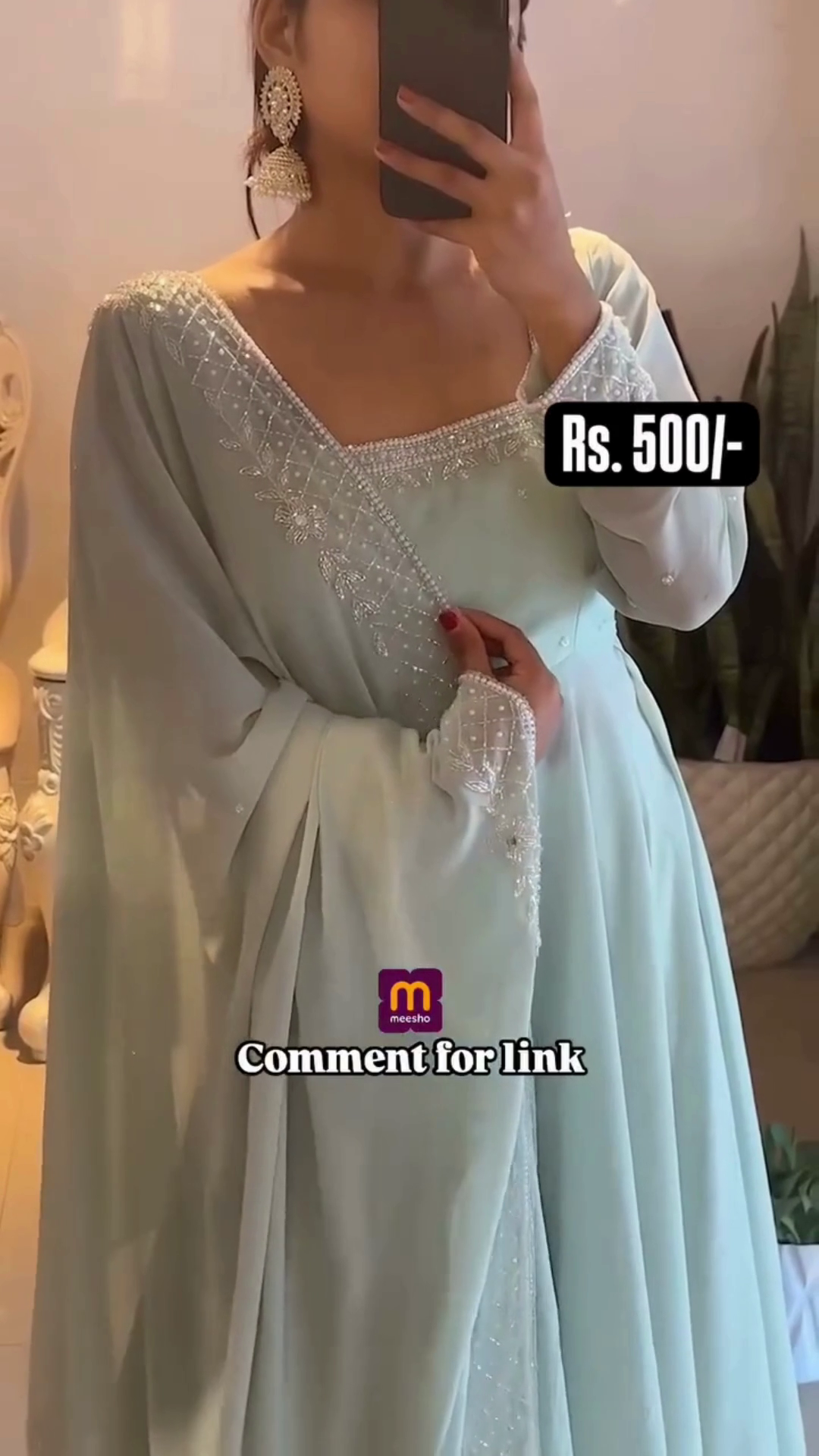 - Premium Georgette Fabric: The gown is made from high-quality georgette fabric, known for its soft texture and luxurious drape. The lightweight fabric flows beautifully, adding an ethereal touch to your look.