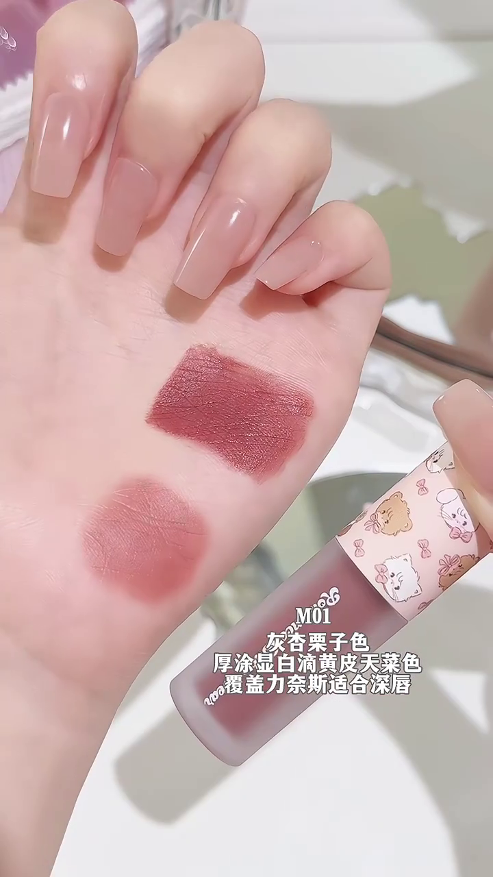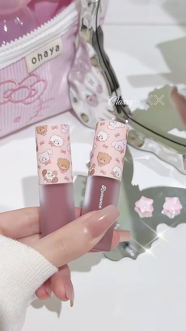 Cheek Tint – Soft matte formula in a muted mauve tone, cute bear packaging, and blendable finish.