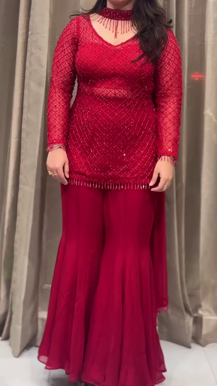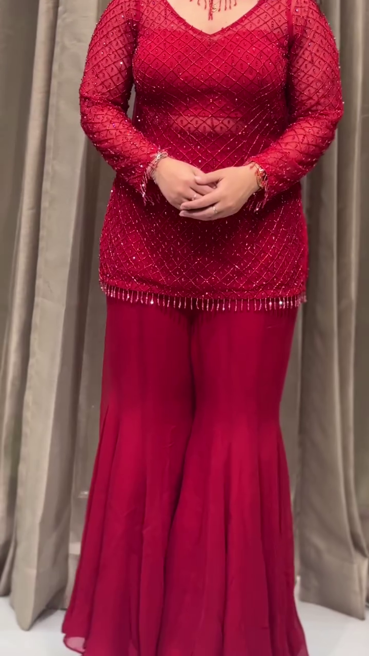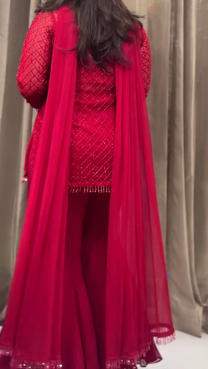 • Perfect Gift Idea: Looking for a thoughtful gift for a loved one? This beautiful red sequin embroidered sharara suit set makes an ideal present for brides-to-be, friends, or family members celebrating a special occasion.