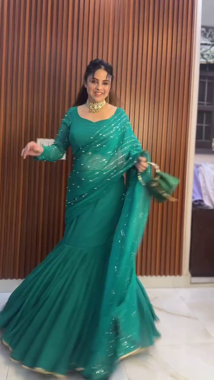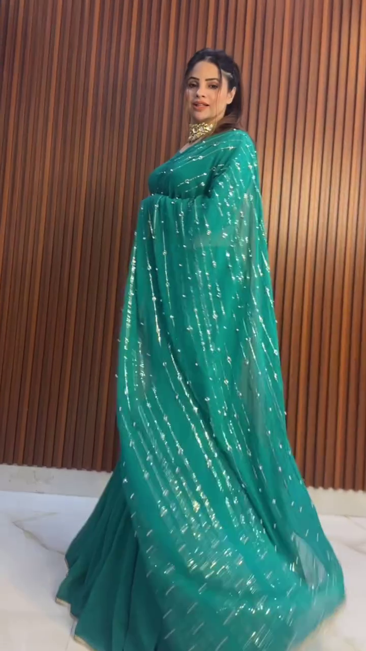 • Durable & Timeless: Crafted with high-quality materials, this saree is made to last, making it a worthwhile investment for multiple occasions. The rich Rama green color and sequins embellishment ensure it will remain a standout piece in your wardrobe for years to come.