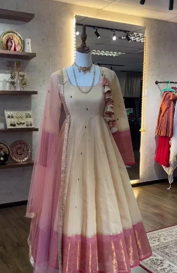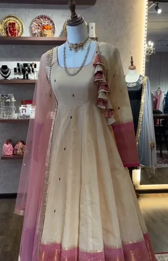 Intricate golden zari embroidery along the neckline and cuffs.