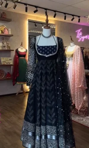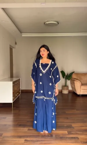 Graceful Sage blue Ethnic Co-ord Set with Embroidered Kurti and Flared Palazzo Pants