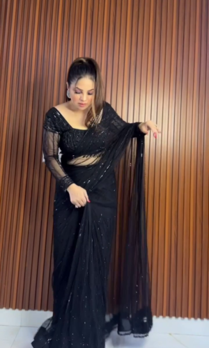 Beautiful Black Sequins Embellished Pre-Stitched Ready to Wear Party Wear Saree Saree with Designer Blouse for Women – Elegant Indian Traditional Outfit for Wedding, Reception & Festive Celebrations