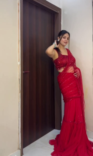 Glamorous Red color Sequins Embellished Pre-Stitched Ready to Wear Party Wear Saree Saree with Designer Blouse for Women – Elegant Indian Traditional Outfit for Wedding, Reception & Festive Celebrations