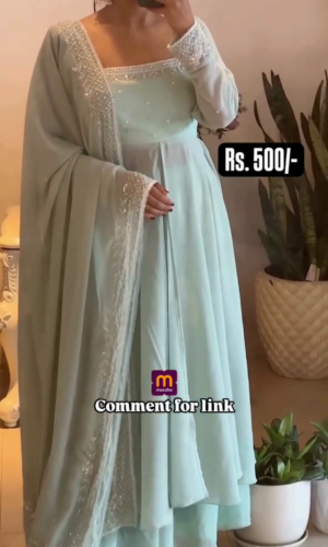 3 pc Georgette Ethnic Long Anarkali gown with Sequence Embroidery dupatta set with pent