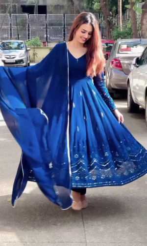 Party Wear Blue georgette thread sequence work party wear Anarkali suit Pent Dupatta Set for women