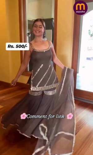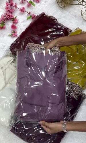 Heavy Faux Georgette Sequence Embroidered Work Dress with Stitched Sharara