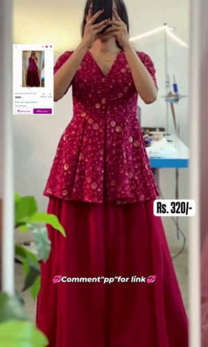 Latest Party Wear Wine Embroidered Top and Lightweight Organza Palazzo Suit