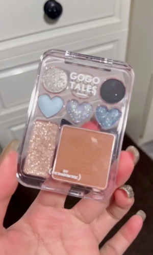 Cool-Toned Blue and Silver Mini Palette Featuring Heart-Shaped Glitter Shadows, Matte Basics, and a Soft Bronzer – A Playful Yet Versatile Set for Creative Eye Looks and Subtle Contour